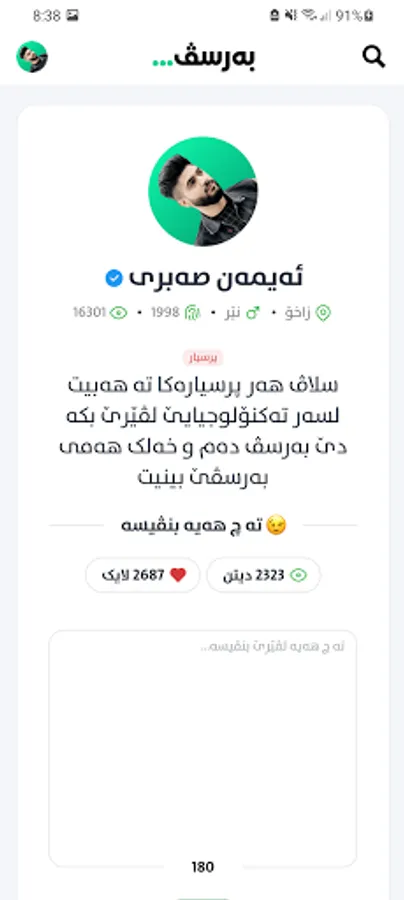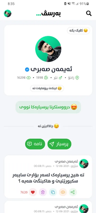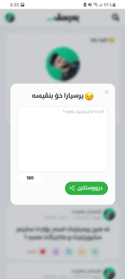 بەرسڤ ئەپلیکەیشنەکە دشێی ناما بۆ خەلکێ بهنێری لسەر پرسیارێن وان بێ کۆ ئەو بزانن تە یێ هنارتی بۆ وان هەروەسا دشێی تەماشەی بەرسڤ و پرسیارین خەلکێ بکەی ئەوێن وان بەلاڤ کرین و دشێی مفای ژێ وەربگری