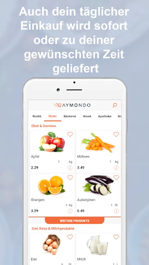 Wenn du noch einkaufen gehen musst, aber keine Zeit Oder Lust dazu hast, die du Möglichkeit deinen Einkauf bei Aymondo zusammen zu stellen und dir liefern zu lassen. Und das alles mit für Lieferung und 24 Stunden 7 Tage die Woche.