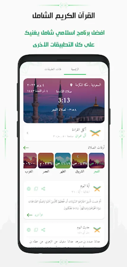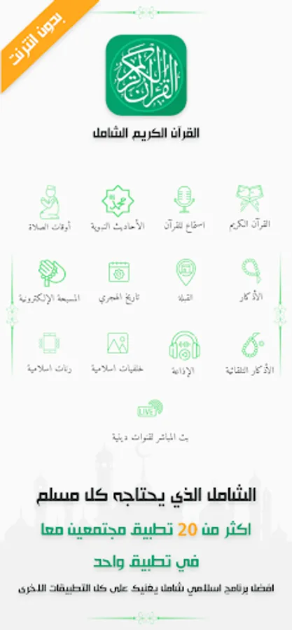The comprehensive application that saves you from all other applications has everything that a Muslim needs in his daily life and without the Internet, our application contains prayer times, call to prayer, the Holy Quran, voice, image, interpretation, and daily Muslim remembrance with automatic remembrances and the automatic Quran, listening to the Holy Quran and a live broadcast of the Holy Quran and Qibla as well Islamic wallpapers and ringtones all this without the net to you application features: