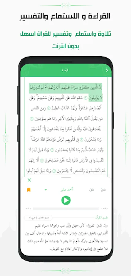 The Holy Quran, complete with Warsh novel on Nafeh, without an internet connection, and it is completely identical to the paper Qur’an with the advantage of the interpretation of the Noble Qur’an and all without the Internet. The program of the Holy Qur’an through the page of the Qur’an also provides you with the advantage of listening to the Holy Qur’an with a 250 voice reciter of all the narrations of the Holy Qur’an and all this without the net in addition Anwa Tafseer contains 4 different books to interpret and understand the Noble Qur’an