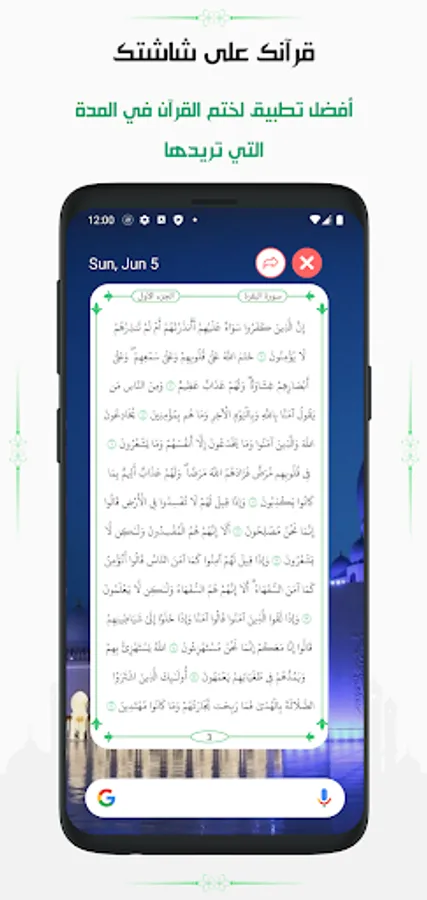 The best application for sealing the Noble Qur’an in the period you want. Our application helps you to seal the Noble Qur’an, as it provides you with daily Quranic pages that appear automatically on a phone screen even if you use other applications without internet. You can seal the Noble Qur’an through the automatic Qur’an.