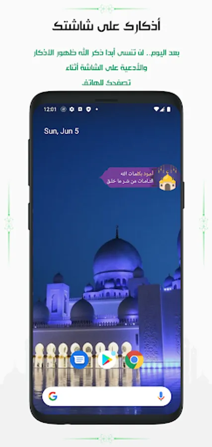 ✔️ Azkar Muslim without Net works automatically by showing on the screen: