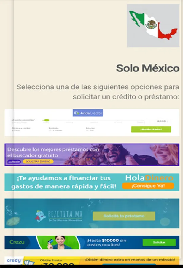 We have created this app with the intention of facilitating the search and comparison to request a credit or personal loan instantly.
