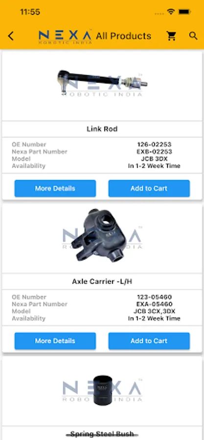 NEXA JCB Parts app offers the whole range of parts for NEXA Robotic India products. Ranging from parts for JCB Backhoe loaders, Terex, case 770, JCB 2CX, 3CX, 4CX, 5CX, 3D & 3DX machines. This app is the database of NEXA Products