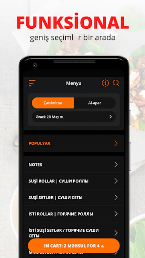 However, besides sushi, Japanese cuisine is also known as such dishes as sashimi, nigiri, yaki, tori, unagi, teriyaki, which you can also take to our restaurant, and now and order with delivery to Baku.