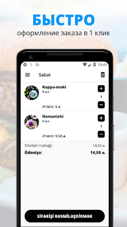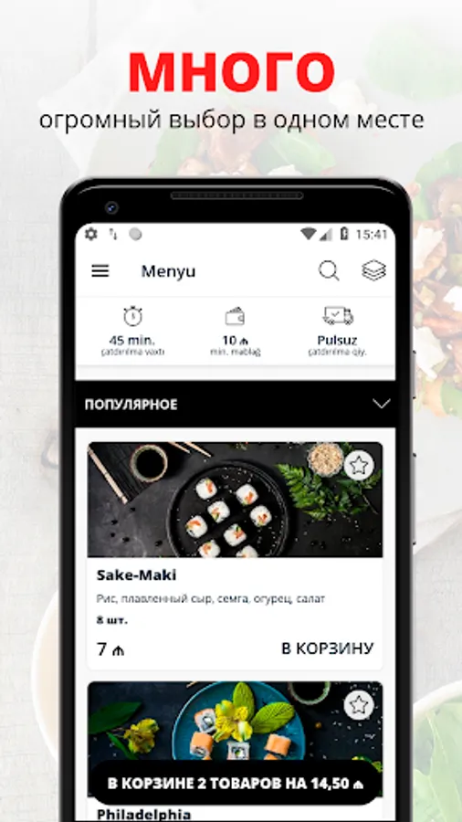 Free delivery radius: Sabail, Nasimi, Narimanov, Khatai, Yasamal, Nizami and Binagadinsky districts.
