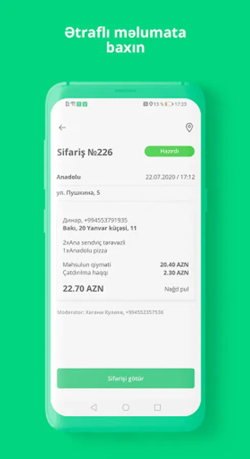 Receive and deliver orders using a convenient app and a map showing the customer's location for quick navigation on the ground.