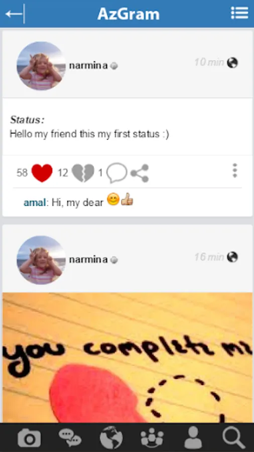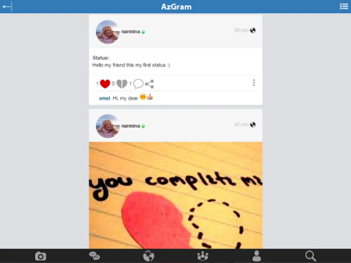 AzGram is a simple way to capture and share the world’s moments. Follow your friends and family to see what they’re up to, and discover accounts from all over the world that are sharing things you love. Join the community of many people and express yourself by sharing statuses, photos and videos from your day–whether it’s your morning routine or the trip of a lifetime.
