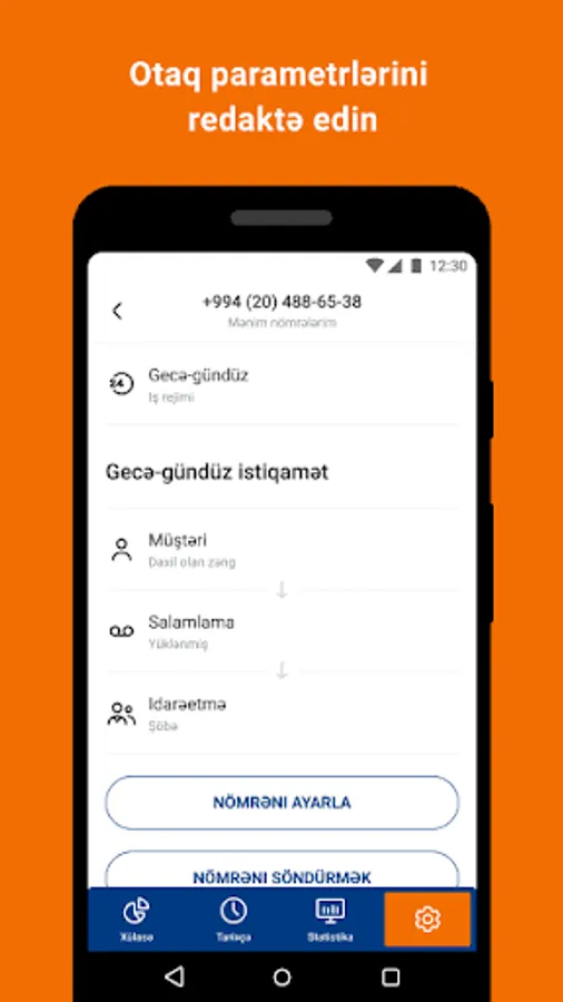 - istənilən zaman və istənilən yerdə nömrələrin iş marşrutlarını dəyişmək və Virtual ATS-in digər funksiyalarından istifadə etmək.