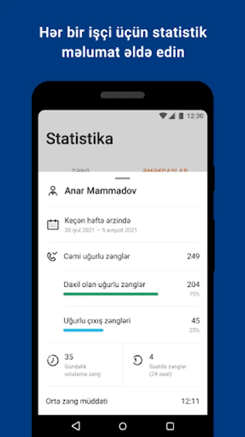 - birbaşa olaraq smartfonun ekranında istənilən dövrə aid statistikanı öyrənmək;