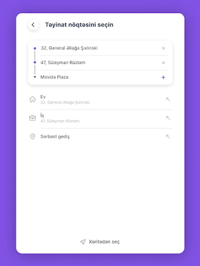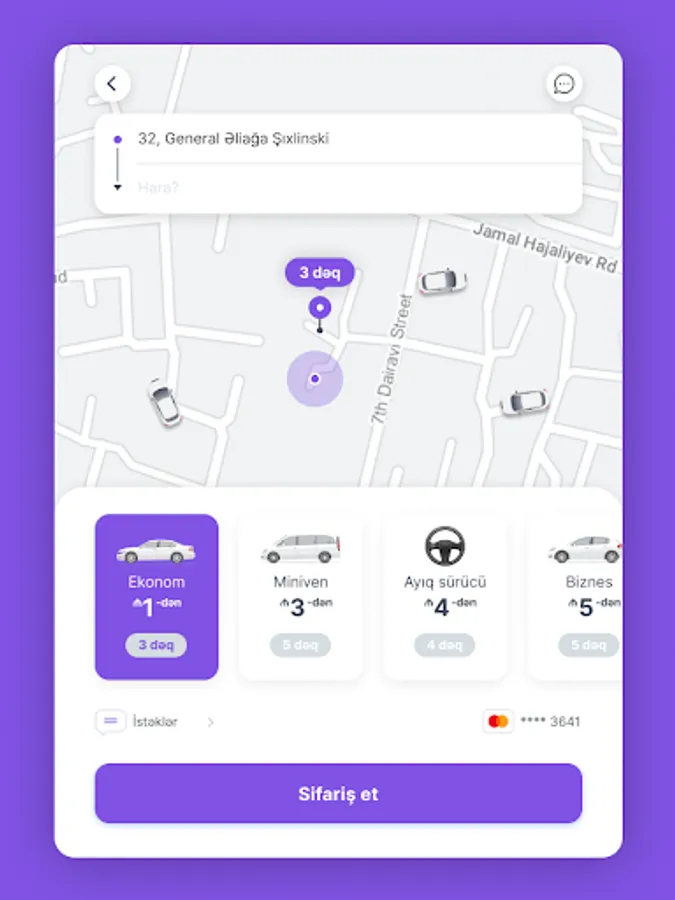 ~ The system detects your location via GPS. You can find out the fare in advance and order the service you want by simply selecting the destination (on the map or in the address bar).