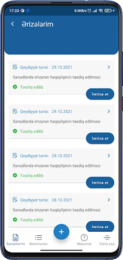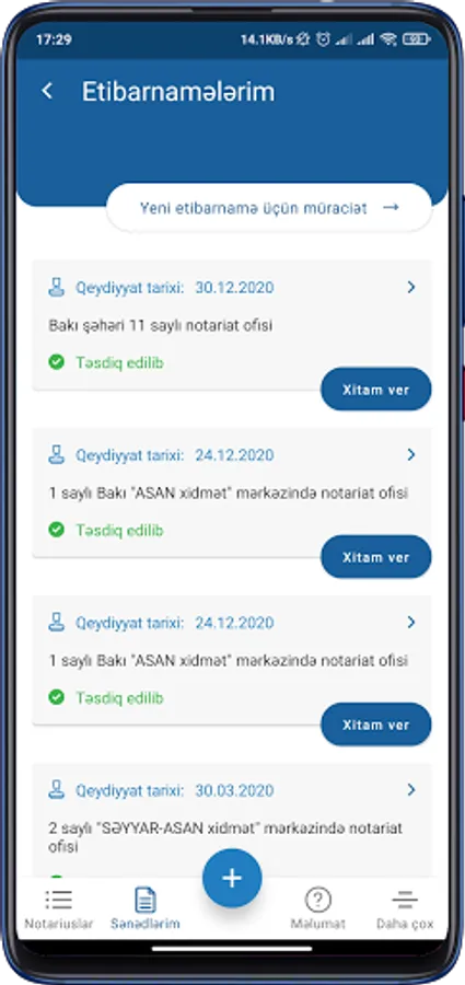 Through this application, it is possible to save documents related to all notarial transactions in which a person is a participant, to receive information about the invalidation of the document immediately, and to use the electronic version.