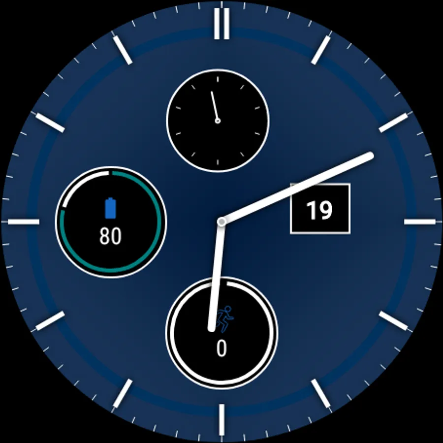 This watch face is a stylish interpretation of a classic watch face combined with modern functions of Android Wear.