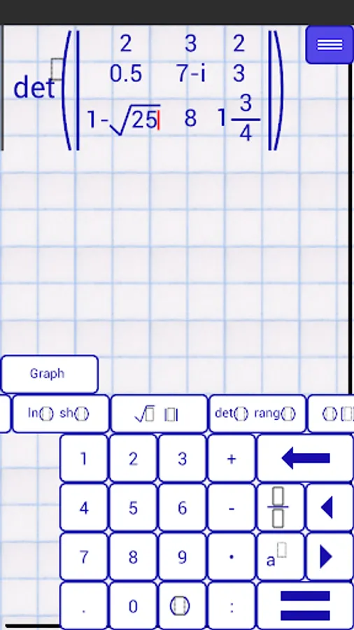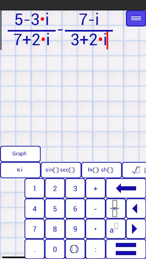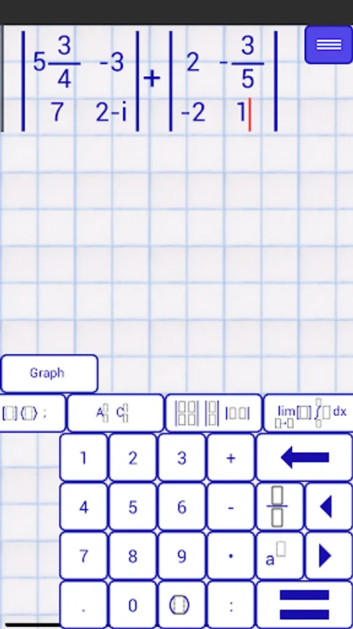 With this calculator you can calculate mathematical expressions with fractions, mixed fractions, complex numbers, matrices.