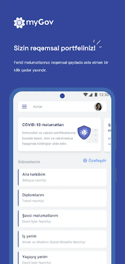 The purpose of the “myGov” portal is to facilitate the work of citizens, ensure transparency and efficiency through the presented electronic services, providing the transition from reactive services to proactive ones. “MyGov" is a system of e-services that connects citizens, government, and business entities on a single platform based on a predictive government concept. Citizens will get acquainted with the information provided by government agencies in their personal cabinets at the "myGov" portal (www.my.gov.az), apply electronically to the services, obtain e-references and other documents, verify the accuracy of the information, will be able to regulate the data transmission process to other entities. The Citizen has the opportunity to track the history of all user activities (login to the personal cabinet, login device, usage of services, log out).