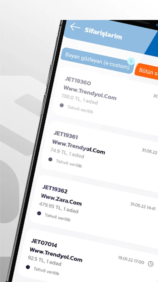 "JETKARGO" LLC was established with the aim of making Turkey's online shopping pages more accessible. Our business principle is that all Turkish online shopping stores (Trendyol, Morhipo, Hepsiburada, Koton, Zara, LC Waiki, etc.) refuse to send products directly to Azerbaijan. is to deliver to our customers more conveniently and at a more reasonable price. Our company, with the license obtained in accordance with the legislation of the Republic of Azerbaijan, carries out the delivery of both domestic and international postal parcels, most importantly orders from Turkey, from 2021. Our company, registered in Azerbaijan and Turkey, operates in both countries operates its own offices and warehouses. Our company provides our customers with 8 different services, as well as cost-effective and safe transportation and delivery services from Turkish online shopping sites. JETKARGO is the first in Azerbaijan to deliver your packages with Secure Transportation and a 3% commission fee. This is how you choose us.customers can get their products with confidence and less budget.