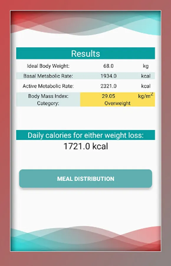 By this application it is possible to calculate daily calories for either weight loss and Ideal body weight, Basal metabolic rate, Active Metabolic rate and Body Mass Index.
