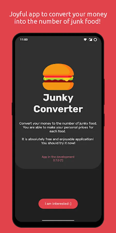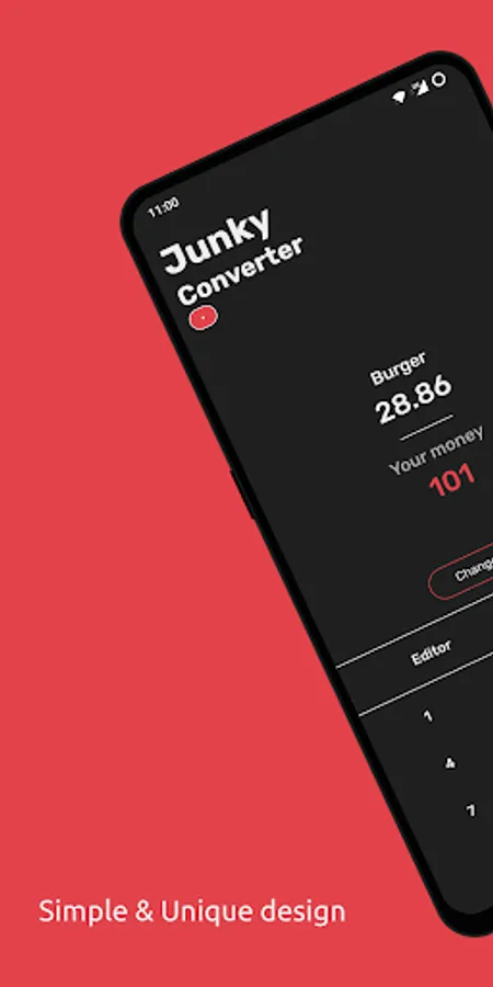 Convert your money to the number of junky food. You are able to make your personal prices for each food. Nice to show your family and friends.
