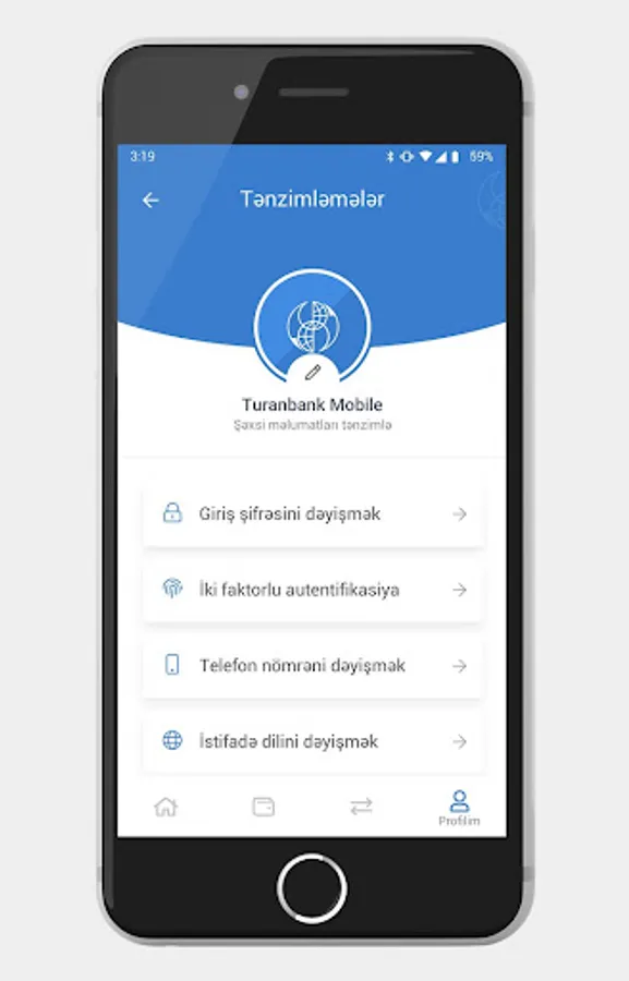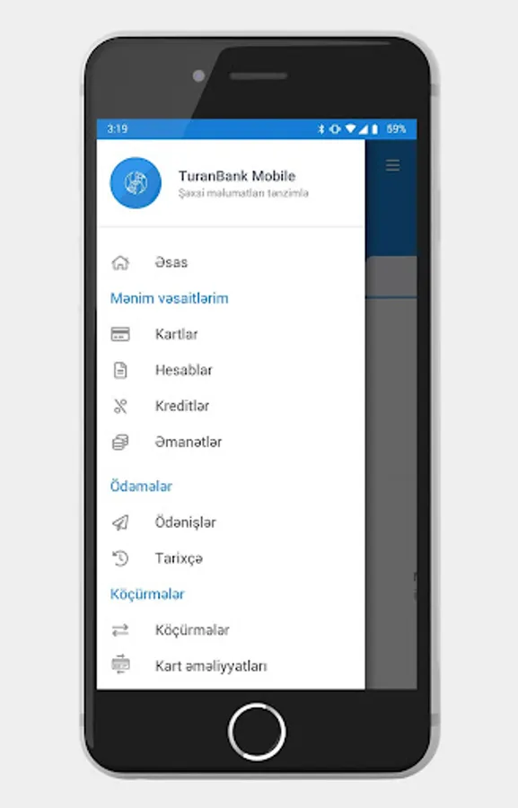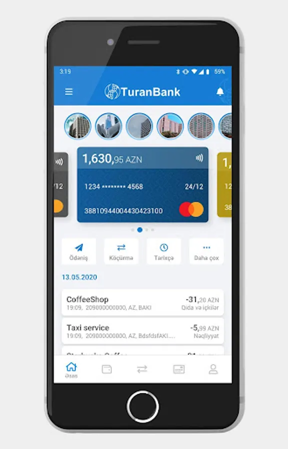 TuranBank mobile application is designed for your convenience. You can benefit from the following banking services by uploading the mobile application of our bank:
