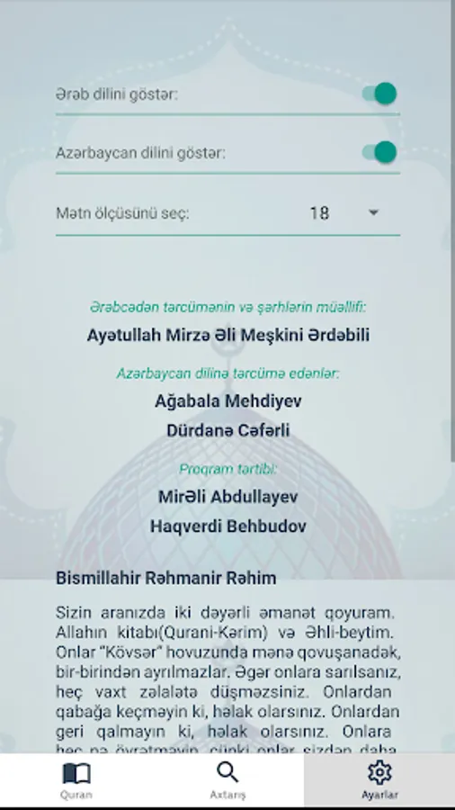 İstifadənizdə olan bu proqram, Qurani-Kərimin dilimizə olan ən gözəl tərcümə və şərhinin elektron versiyasıdır.