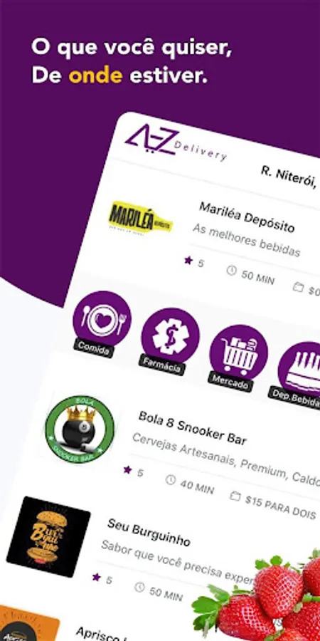 Download the App and order your food and products through AZ Delivery. Here you have lists with thousands of options with free delivery for your convenience and security. With our Food Delivery, you order dishes from your favorite restaurants and we also have all kinds of stores, from Petshops to supermarkets!