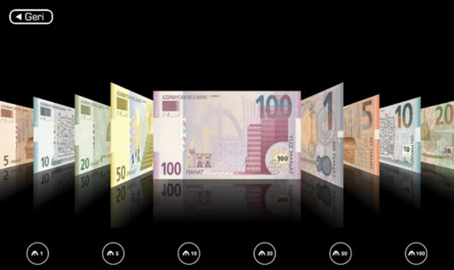 - Çevir - Əskinasların sol aşağı küncündə gördüyünüz çevir düyməsi vasitəsi ilə pulların ön və arxa hissəsini görmək mümkündür.