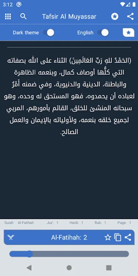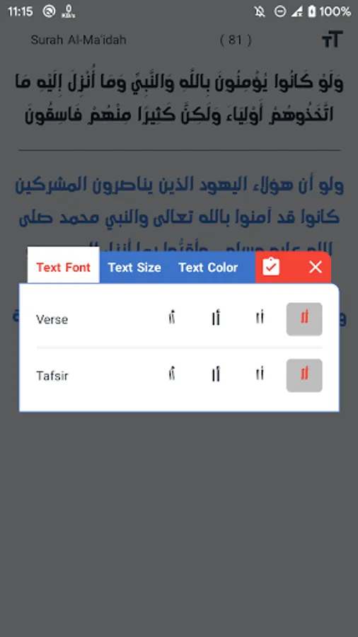 4. The possibility of sharing the verse with its Tafsir.