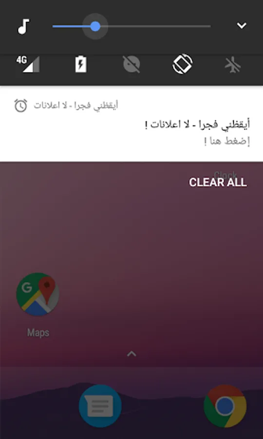 اضبط التوقيت المضل لصلاة الفجر من زر التنبية اعلى يمين الشاشة
