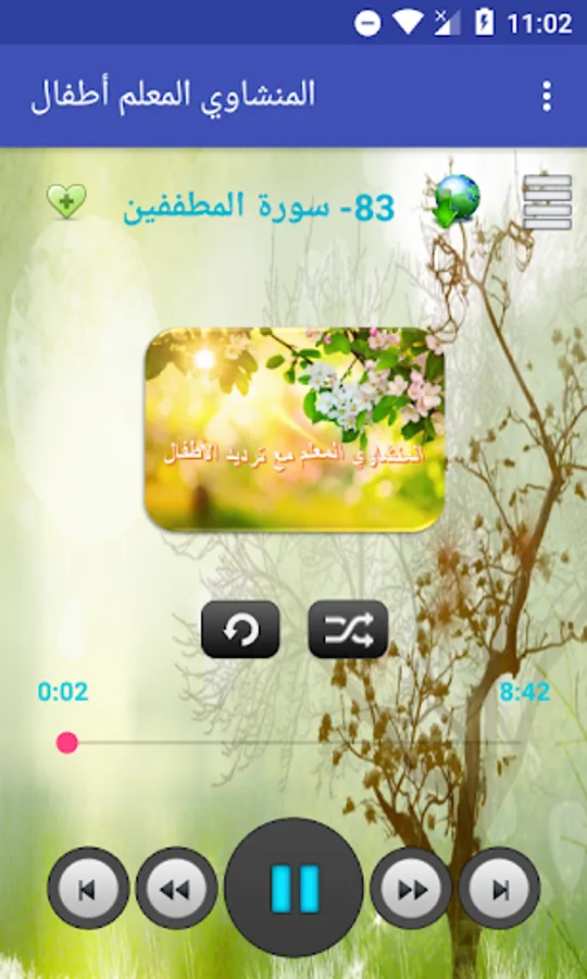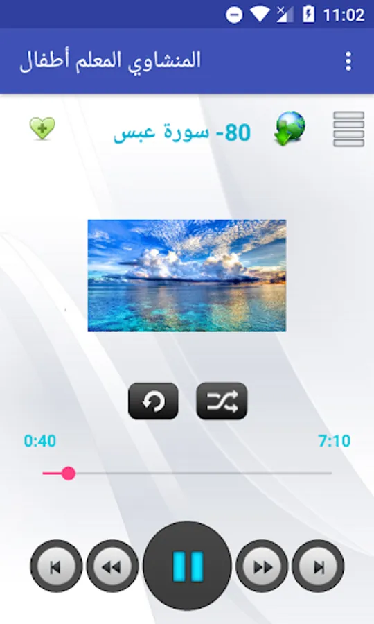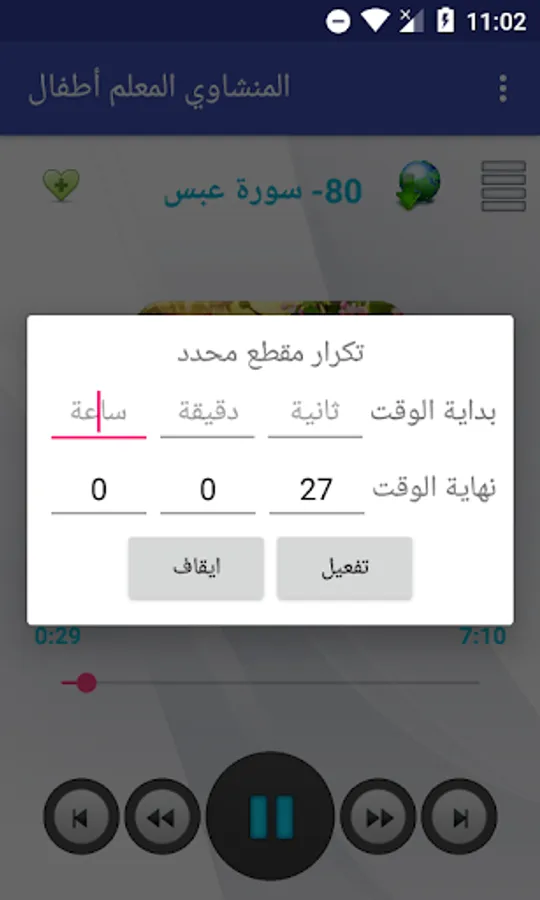 محتوى التطبيق: سور القران الكريم بصوت الشيخ المنشاوي مع ترديد الأطفال