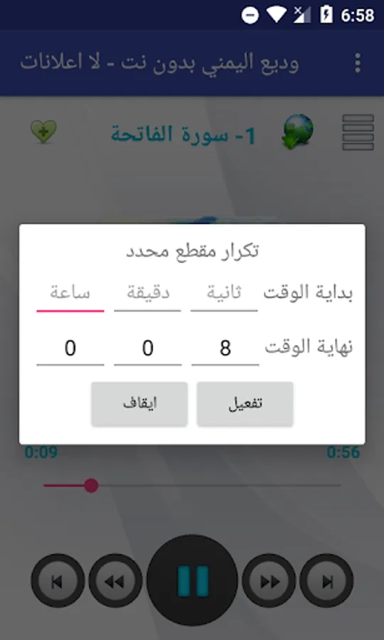و اخيرا برنامج يعمل على اندرويد بصوت القارئ الشيخ وديع اليمني