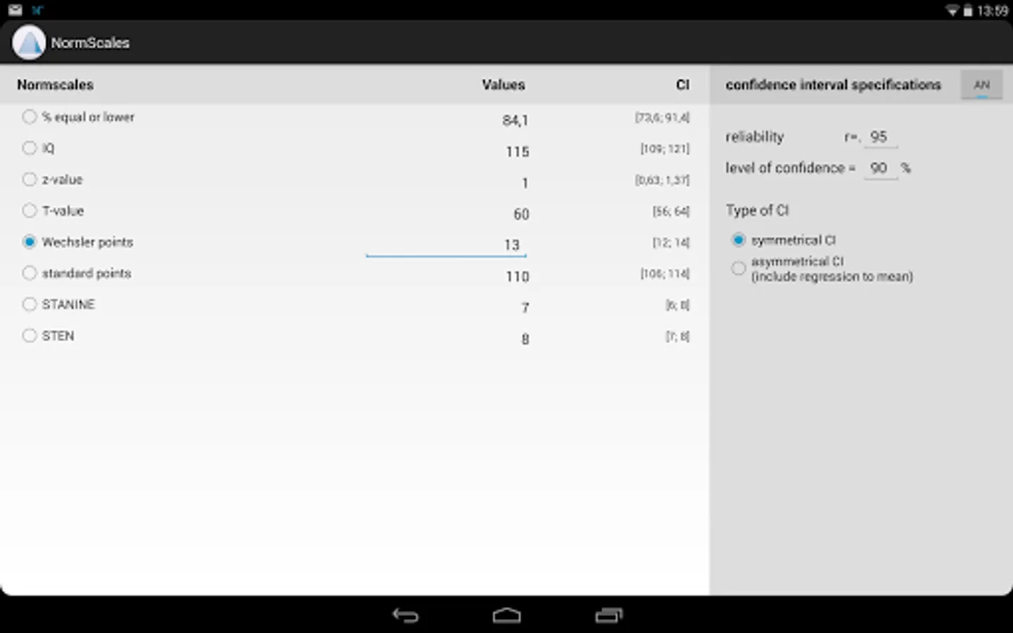 NormScales provides a quick & easy way to convert theses scores. Additionally it allows you to compute confidence intervals for your norm scores.