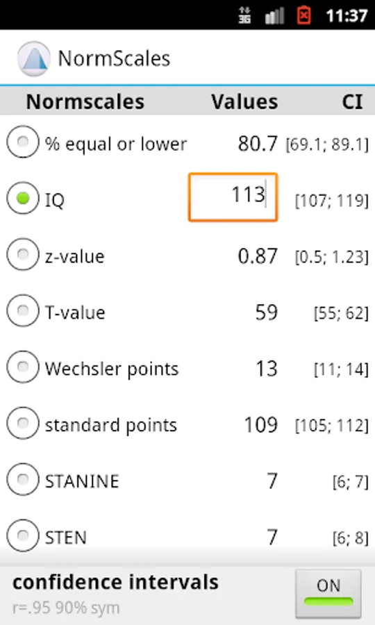NormScales Pro provides a quick & easy way to convert theses scores. Additionally it allows you to compute confidence intervals for your norm scores.