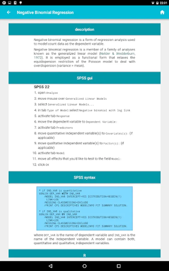 Once you have found the correct statistical test, how2do's are provided for SPSS and Cran R.