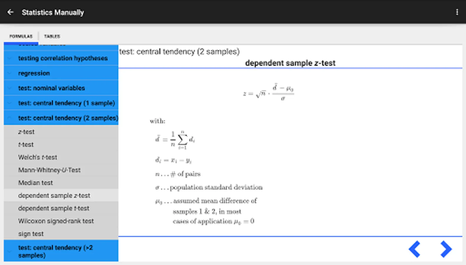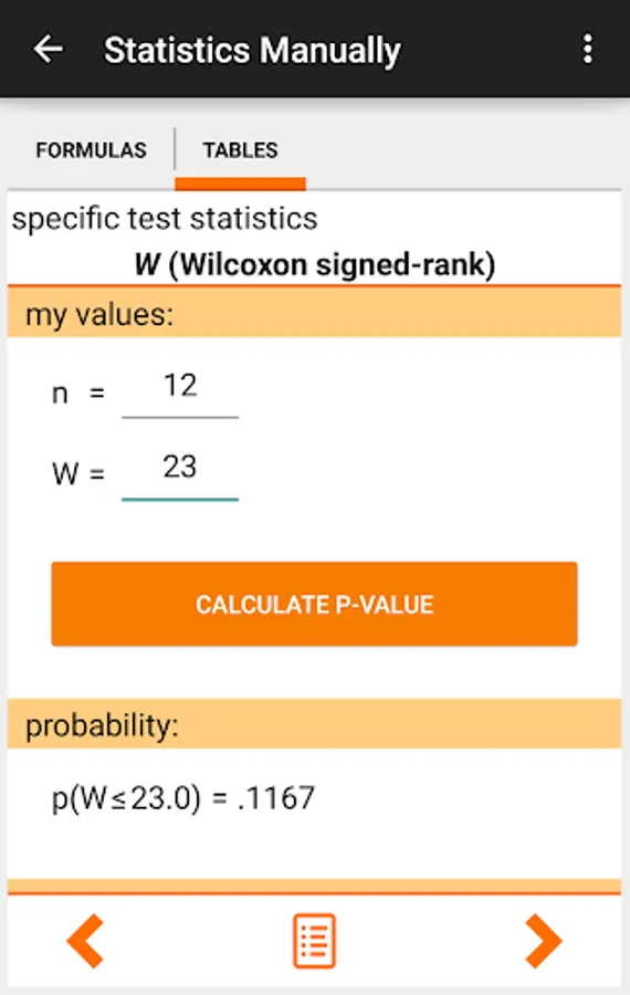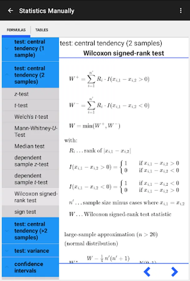 It contains a large collection of formulas of statistical methods common in the social sciences as well as the statistical tables needed to interpret your test results.