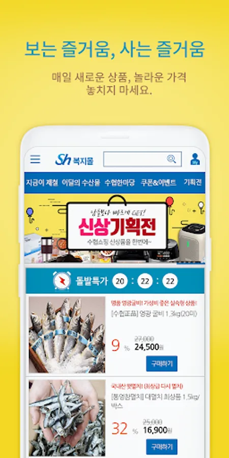 Meet the services and benefits of Sh Welfare Mall (Suhyup Welfare Mall), such as unexpected specials, weekly specials, various discount coupons and events!