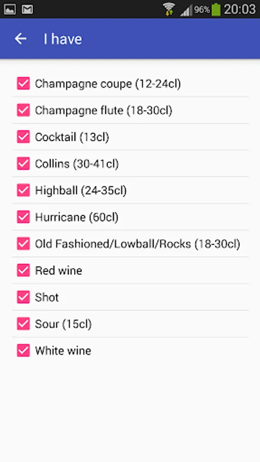 You don't need tens of thousand of drinks you can not make. This app only suggest drinks you can make. Synchronize the list of ingredients with what you have and all suggested drinks can be made by you. A shopping list is also available so you can increase the number of drinks you can make.