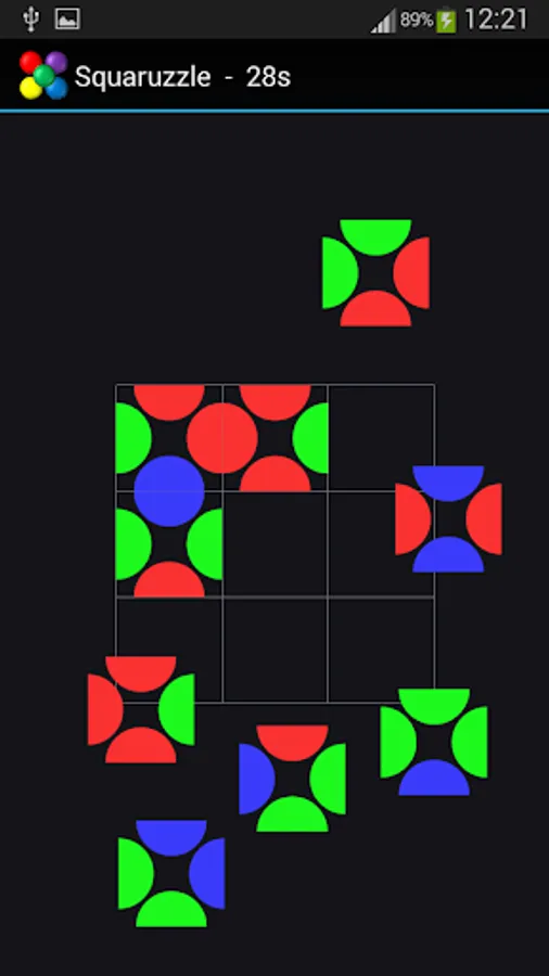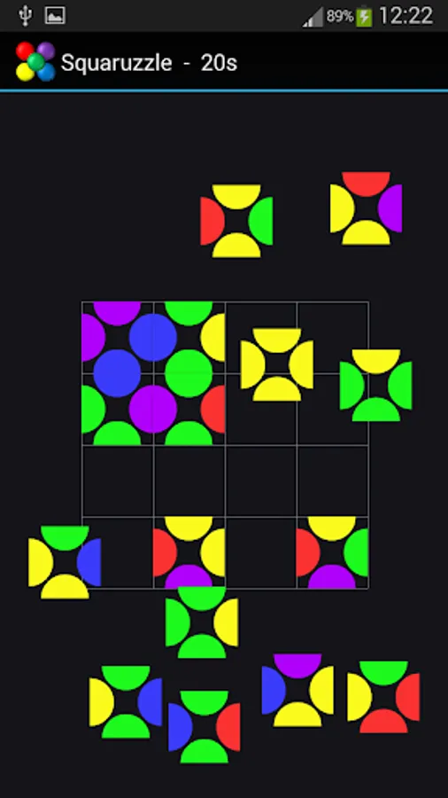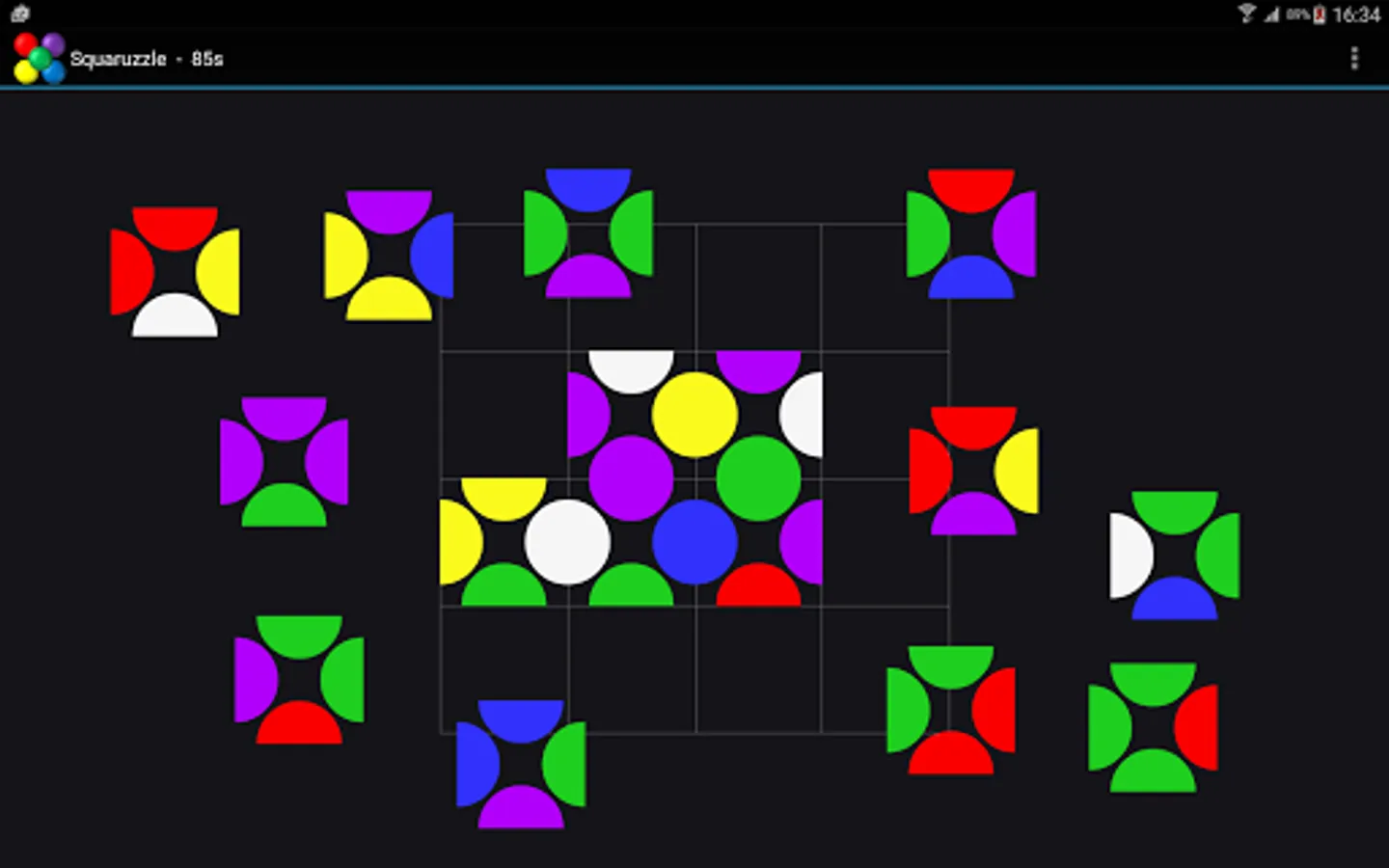 Squaruzzle is a jigsaw puzzle game. Move the pieces until the circles only have one color.