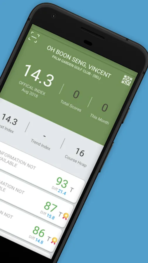 • A lost or new phone is never a problem – just show up and register and your handicap and scores are shown on your smartphones