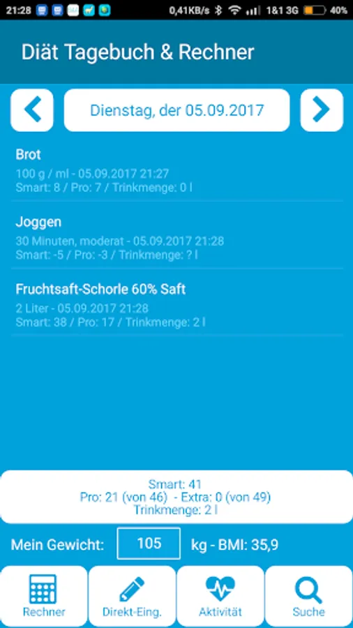 Ideal as Diet diary or Weight Watching. Also possible is point tracking.