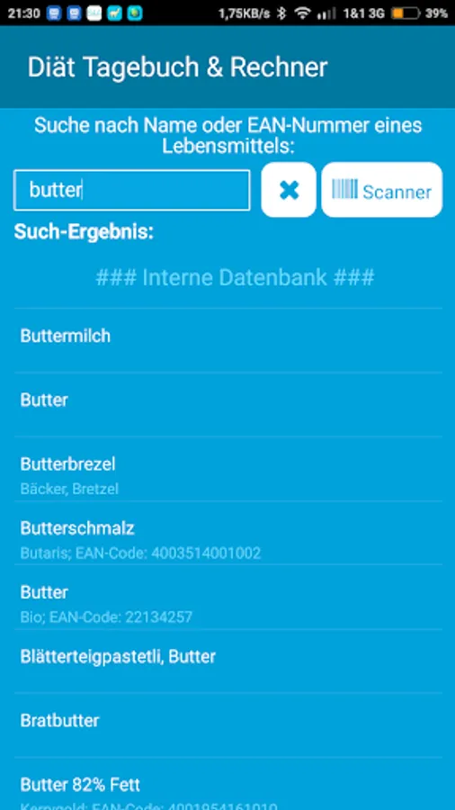 ✔ Food database with over 2200 entries