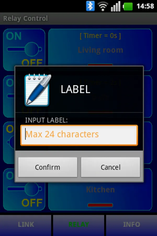 For each relay a label can be associated (max. 24 characters). The label allows you to immediately identify the function or type of load connected to the relay.