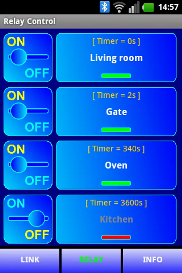 Each relay can be individually set to operate in bistable mode (ON / OFF) or monostable mode (timed mode).