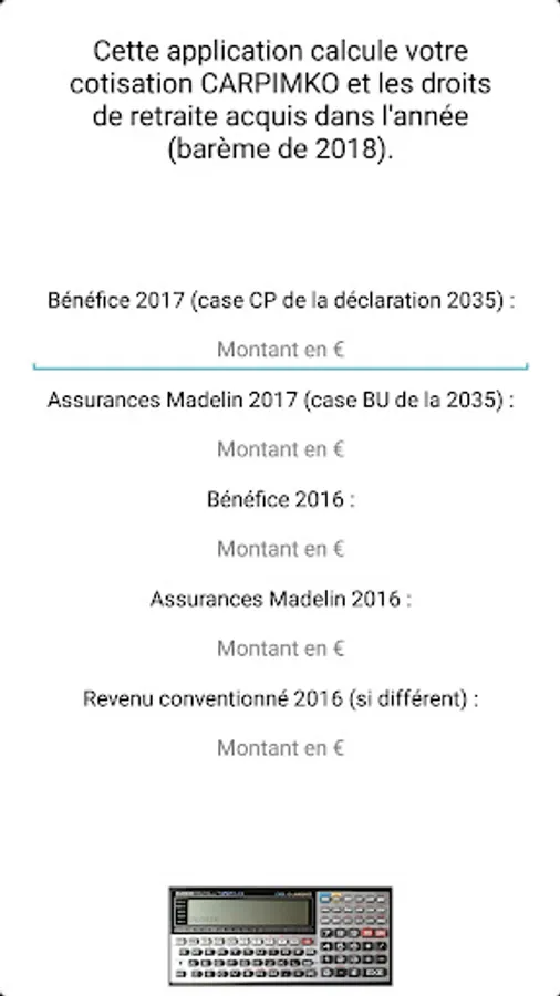 Enter your income and the amount of your insurance Madelin. The app gives you the amount of the contribution for each plan and the pension points acquired. Then she totals together and you show the net pension amount acquired in the year.