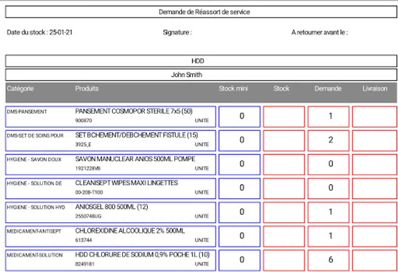 5) Facilitates the tracking of your stock and sends by e-mail the monthly replenishment requests (PDF format)