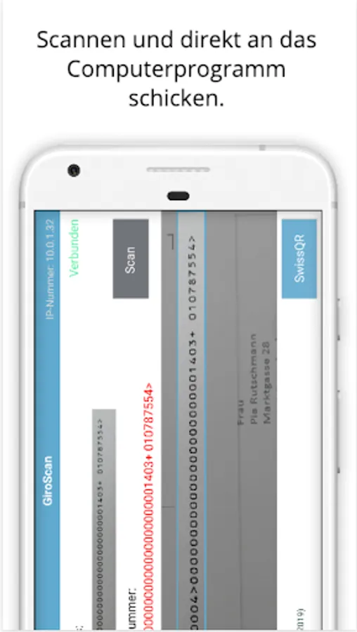 Are you annoyed by entering long reference numbers? Get help with GiroScan. Scan the number and transfer directly to your PC or Mac. There, the number can be automatically inserted into a program of choice.