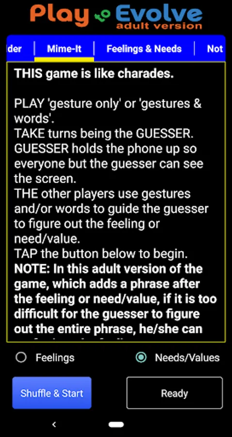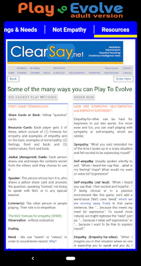 An adult card GAME based on Nonviolent Communication (NVC) that INCREASES EMOTIONAL INTELLIGENCE, reduces anger response, and deepens relationships. We play the physical version every week in my free NVC-based "Emotional Intelligence Play Group".