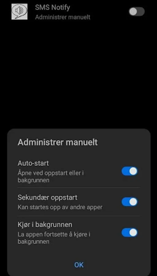 See Android settings->Battery->App-startup. Select Administer manualy for this app.