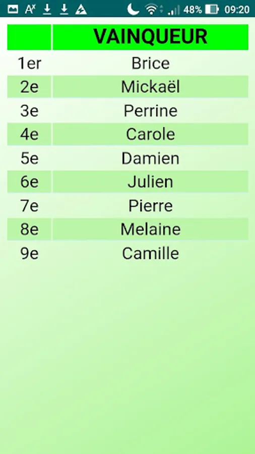 - List of completed games (possibilities to remove in case of input error)