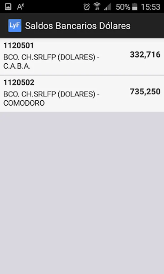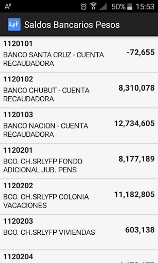 Bank balances obtained in pesos, dollars, Summaries Partnership for Sectional and transfers.