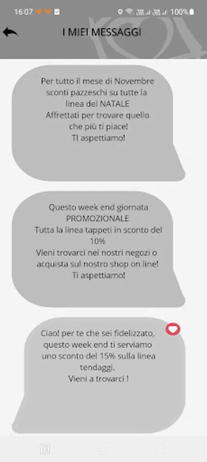 You will also always be connected to our offers and flyers that you can download and consult, receive discount coupons and use them directly from the app and finally receive our special communications in the message area reserved for you!